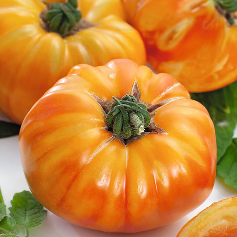 Fruit: Huge 450 g–1.3 kg+ beefsteaks; firm, low-acid, and incredibly sweet with few seeds — perfect for slicing and salads.