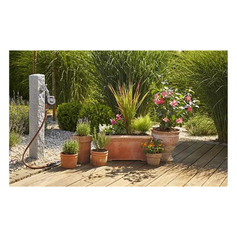 Feel the satisfaction of seeing your plant pots thrive, thanks to the tailored, efficient watering. The system is automatically controlled via the Plant!t Water Timer, freeing you to focus on enjoying your vibrant green haven.