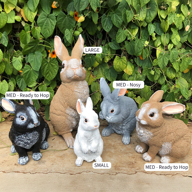 Welcome The Meadow Mates to your garden! This delightful collection of Medium Hand-Painted Concrete Rabbit Statues offers a trio of distinctive personalities, each ready to bring life and character to your outdoor space. Whether you choose the curious Nosy, the energetic Ready to Hop, or the serene Crouched, every rabbit is meticulously hand-cast and hand-painted, ensuring you receive a unique and cherished garden companion.