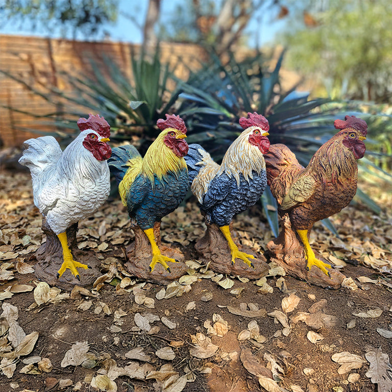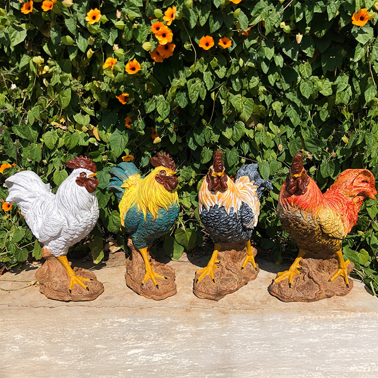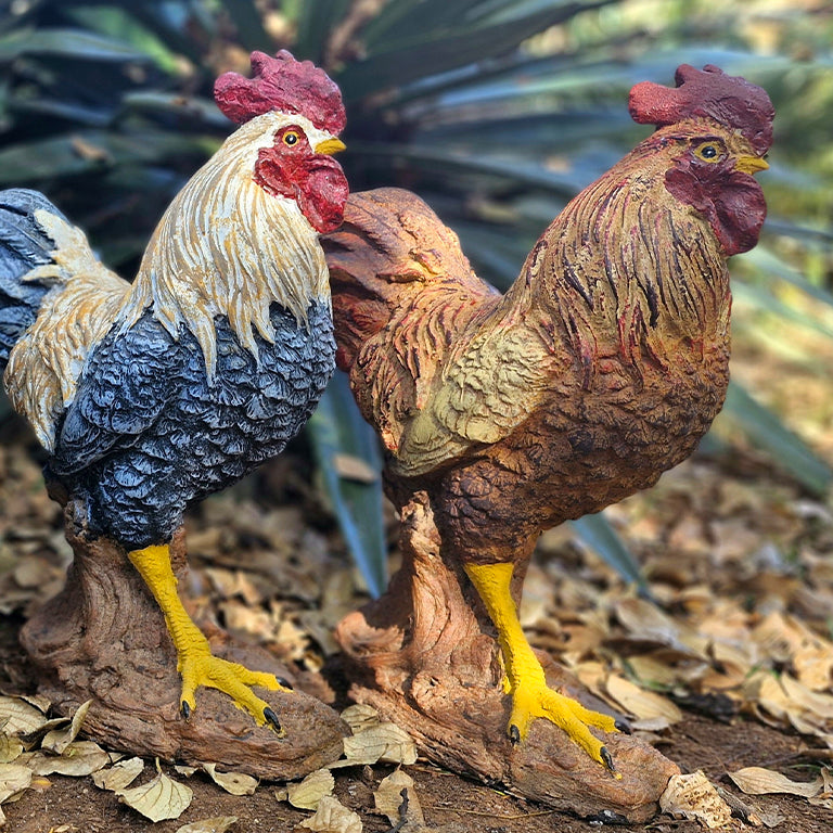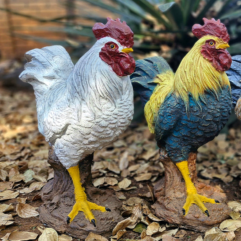 Built for Enduring Presence: Constructed from robust concrete, these impressive statues are designed to brave the elements and stand tall in your garden for years on end. Their steadfast nature mirrors the proud stance of a real rooster.